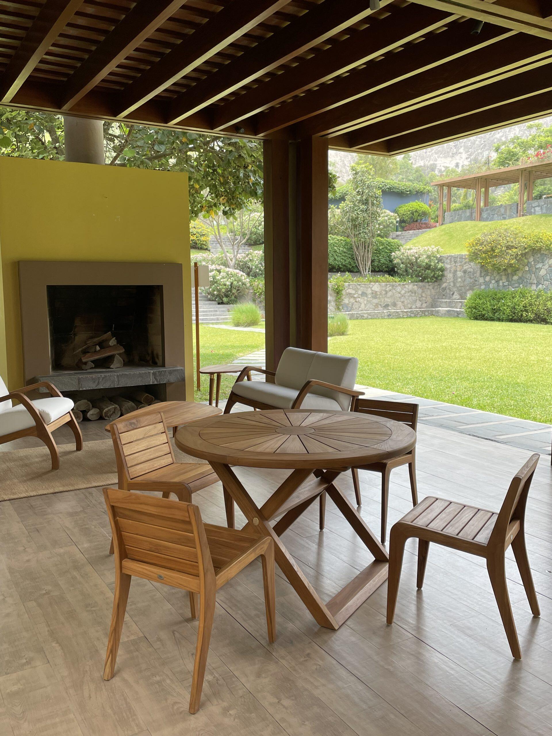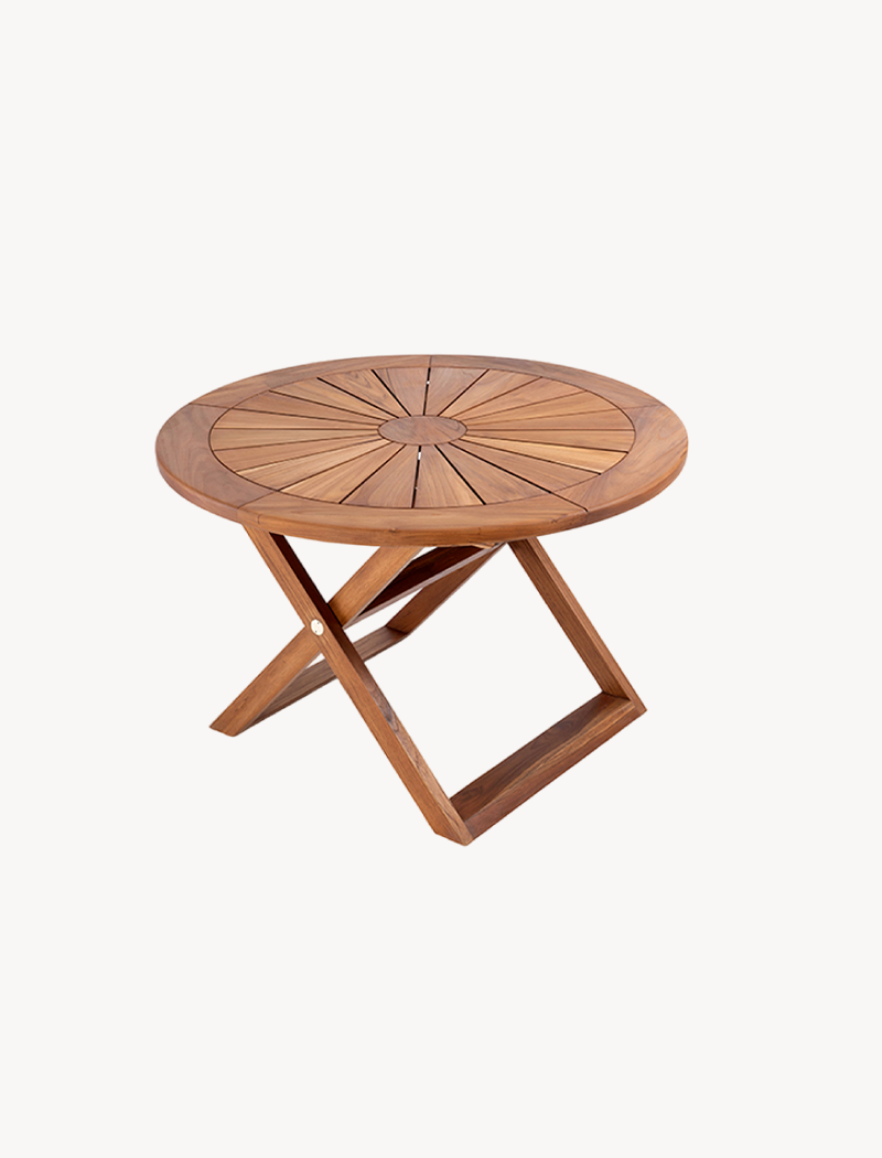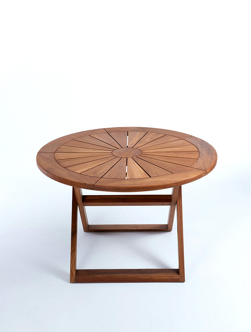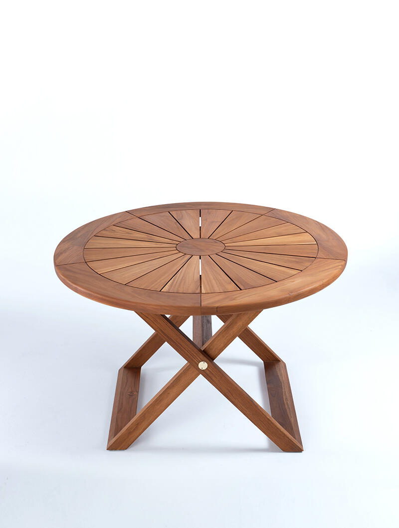 Tablero plegable y patas: Madera teca reforestada. Detalles: Bronce pulido brillante.